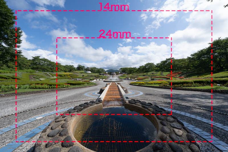 ちなみに24mmというのは画角のことで、イメージでいうとスマホで一番広い範囲を撮れる設定が24mm前後くらいであることが多いです。